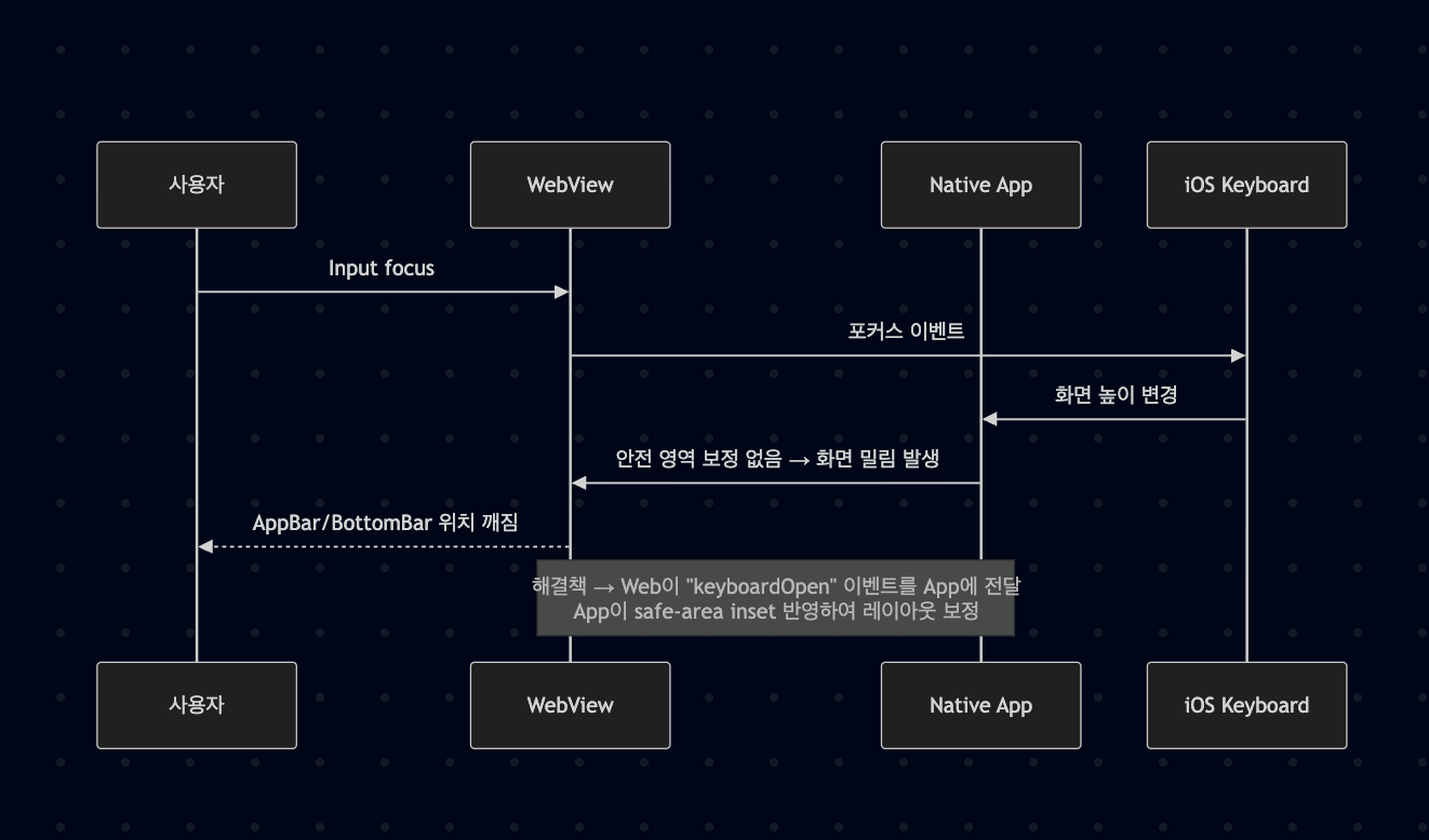 이번 글에서는 제가 WebView 기반 앱을 다루면서 부딪혔던 대표적인 이슈들 ― 네비게이션(AppBar/BottomBar), 페이지 스택, 스크롤/키보드 문제 ― 를 중심으로 어떤 원리로 발생하는지, 그리고 어떻게 해결할 수 있는지를 정리해 보겠습니다.